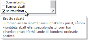 Muspekaren är över fältet Brutto rabatt och beskrivningen visas.