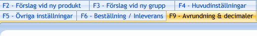 Antal decimaler för Inpriser avser produktens Inpris, Vägt inpris samt Akostnad och Kostnad. Antalet decimaler är enligt standard satt till två, men kan höjas för att öka noggrannheten i vissa sammanhang. Betydelsen av inställningen ökar när man använder valutor som har ett högre värde, t.ex. är GPB värd över 10 gånger så mycket som SEK, vilket kan innebära att ytterligare en decimal kan komma att användas.