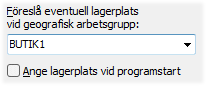 En verksamhet har två butiker med dels roterande personal i kassan och dels fast personal på kontoret som arbetar med t.ex. kundorder och redovisning. Vid t.ex. försäljning önskar man att registrera BUTIK1 och BUTIK2 som lagerplats beroende på var försäljningen sker.
