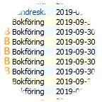 Periodiseringsdatum kommer att föreslås baserat på datum angivet i verifikationens huvud. Detta datum kan sedan förändras om konteringen ska kostnadsföras på en annan period. Om periodiseringsdatum förändras ska datum ligga inom innevarande räkenskapsår eller i annat registrerat räkenskapsår framåt i tiden. Periodiseringsdatum kan alltså inte anges tidigare än innevarande räkenskapsår. |