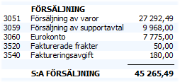 Rubriker och summor i Fet stil innebär att alla rubriker