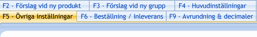 Uppgifterna som anges här föreslås vid registrering av Beställning, Inleverans samt Offert och Order / faktura, men kan ändras vid registreringstillfället. Information om transportkod och transaktionskod finns att få hos Statistiska Centralbyrån.