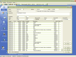 Söklista med inneliggande order öppnas från Order / faktura. Ett antal kolumner är invalda samtidigt som inställningarna Justera bredden till kolumner och Justera höjden efter antal rader för söklistor är aktiverade varför söklistan tar stor del av skärmutrymmet i anspråk när den visas. Windows XP med temat Standard blå används varför raderna tonas med en svag blå nyans. |