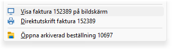 Sök beställning eller faktura