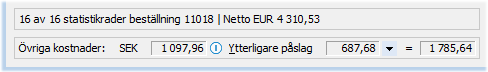 Inpåslag i systemvalutan tidigare föreslaget vid inleverans baserat på produkten eller den aktuella leverantören beroende på Inpåslag% var registrerat. Påslaget kan också utgöras av eventuella t.ex. frakter och tullavgifter som har gjorts på beställningen och har fördelats vid inleverans baserat på värdet av varje inlevererad produkt. |
