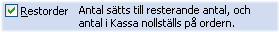 Notera att om hela ordern är av status Order, d.v.s. att inget på den befintliga ordern ska betalas eller gå på följesedel, kommer ej heller restorderförfarandet att träda i kraft, utan hela ordern ligger kvar orörd efter att knappen F7 - Order har valts.