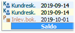 Vid bläddring i listan med t.ex. konton med tangentbord används Pil-höger för att visa transaktioner och saldot på kontot. Transaktioner visas tills nytt klick i listan eller stängs med tangenterna Pil-vänster, Escape eller F12.