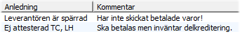 Kolumnen Kommentar. Om kommentarer förekommer på fakturor i informationslistan som inte ingår i betalningsförslaget, kommer också kommentaren att visas i listan. Kommentaren kan då innehålla information om det eventuella skälet till spärren eller varför den inte har attesterats.