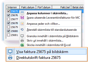 I leverantörsreskontran vid t.ex. attestering kan fakturan och tillhörande bilagor öppnas i datorn. |