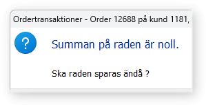 Frågan kan anpassas till att istället visas som varning med meddelande nere i statusraden. Detta innebär att knappen Ja eller Nej inte behöver tryckas i de profiler där man av olika skäl inte önskar att besvara frågan. Ett exempel kan vara vid registrering av nollorder för effektuering av lagertransaktioner.
