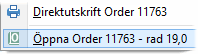 En order kan även öppnas för vidare bearbetning i Order / faktura eller Serviceorder direkt från skärmlistan. |