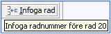 För att infoga ett radnummer mellan två positioner, markera först raden där positionen ska infogas i skärmlistan och välj därefter knappen Infoga rad. |