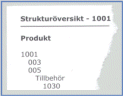 På detta sätt kan en rapport skapas av strukturen och följas med utgångspunkt från den aktuella huvudprodukten. Se även avsnittet Utskrifter Administration för utskrift av strukturer. |