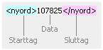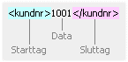 Taggarna omsluter själva datan i strängen och anger vilken typ av data som skickas, t.ex. ett kundnummer när en kund har valts i Winbas. |