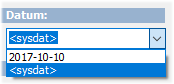 Systemdatum minus dagar. Variabeln kan även användas tillsammans med ett konstant antal dagar. T.ex. kan Senaste köpdatum mindre än <sysdat>-365 användas i söklistan med leverantörer för att gråmarkera de leverantörer där inköp inte har skett under det senaste året.
