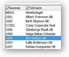 Genom att använda tangenter i samband med sortering kan en förekomst snabbt hittas i en söklista med stort innehåll. Söklistan öppnas normalt sorterad på nummer, eller t.ex. Söknamn om man har valt pil-ner vid fältet Söknamn. Om ett begrepp har angivits i det aktuella fältet, visas den första förekomsten som matchar eventuellt angivet sökbegrepp som markerad rad i listan.