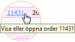 Visa kund, orderblankett eller öppna order direkt från rapporten via länk. |