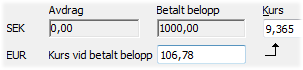 Detta t.ex. vid angivelse av betalt belopp i systemets valuta och därmed den automatiska framräkningen av valutakursen vid avbokning av leverantörsfaktura.