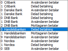 själva banken tillsammans med betalningskoden i listan.