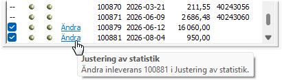 trycks. Om statistiknumret redan finns registrerat, kommer