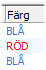 Beroende på inställning visas då också produkten med den definierade färgen t.ex. när den väljs i produktkortet eller vid registrering andra sammanhang.