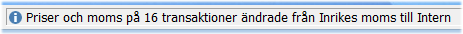 Vid ändring från Intern till annan momskod ändras priset till ordinarie försäljningspris. I detta fall kommer kundens vanliga prislista att användas för prissättningen.