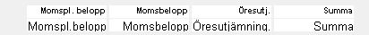 Andra raden består av fasta fält i summaraden som tidigare