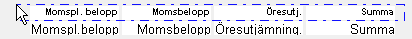 Använd egenskapen Enbart sista sidan för att skriva ut vissa fritexter på blankettens sista sida. Exemplet visar hur fritexter som används som rubriker för blankettens slutsummor kan sättas så att dessa bara skrivs ut på sista sidan om blanketten löper över flera sidor. Detta exempel kräver att man har en högre upplösning på skärmen.
