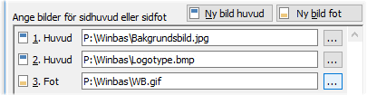 Tryck på knappen Ny bild huvud eller Ny bild fot och ange därefter sökvägen till bilden. Bilden bör vara lagrad på en delad serverenhet för att alla användare ska kunna ha tillgång till den när blanketten skrivs ut. Filen kan vara av valfritt bildformat, t.ex. JPG, GIF, BMP eller WMF.