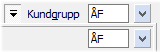 På samma sätt kan också grupptillhörighet till knutna kunder och leverantörer visas. Kundgrupp / leverantörsgrupp visas alltid i vyn Organisationer för huvudföretaget. Grupper i övriga företag kan visas eller ändras i vyn med knappen pil-ner. |