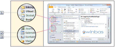 De organisationer och kontakter som finns registrerade i säljstöd, kan även automatiskt registreras som Kontakter i Outlook. Om man t.ex. registrerar en leverantör i ett företag i Winbas och har bestämt att den ska användas i Säljstöd, kommer denna även att bli en kontakt i Outlook.