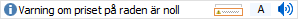Kassa: Varningen visas i statusraden med svart text, ljusblå bakgrund och med ljudsignal. |
