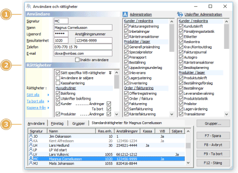 Användare och rättigheter i Winbas