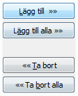 Ange sedan vilka användare som ska ingå i gruppen genom att klicka på användaren i listan med befintliga användare till vänster och därefter välja knappen Lägg till. Man kan även lägga till en användare genom att dubbelklicka på namnet i listan. På motsvarande sätt kan användare tas bort ur gruppen genom att klicka listan till höger med användare som ingår i gruppen och därefter välja knappen Ta bort. |
