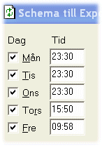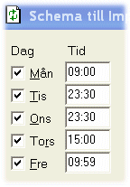 Aktivera scheman Denna flagga sätts på om man vill köra mot schemainställningar, knappen Schema inställning.