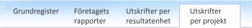 Förteckning över fält som används vid design och utskrift av listor och rapporter från Utskrifter Bokföring i avsnittet Utskrifter per projekt.