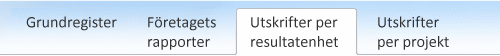 Förteckning över fält som används vid design och utskrift av listor och rapporter från Utskrifter Bokföring i avsnittet Utskrifter per projekt.