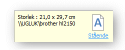 Orienteringen på sidan kan även skiftas mellan stående och liggande direkt i statusrutan genom att klicka med musen på sidsymbolen, där även sidstorleken t.ex. A4 och aktuell skrivare visas.