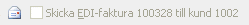 EDI. Om regeln anger att EDI-faktura ska skickas till kunden kommer dialogen istället att visa EDI. Detta förutsätter även att kunden har ett EDI-Kundnr registrerat, samt att företaget har ett EDI-kundnr - annars kommer alternativet EDI inte att vara tillgängligt.
