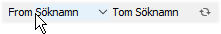 Ange därefter ett intervall för att begränsa urvalet med hänsyn till det valda fältet. Om fältet är kopplat till ett bakomliggande register, visas även knappar för att kunna söka i detta register. Använd söklista eller sökregister, beroende på vilket fält som har valts, för att ta fram en specifik transaktion i det bakomliggande registret.
