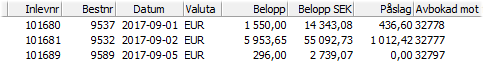 Belopp SEK visar det omräknade beloppet i systemvalutan (SEK) utan eventuella påslag.