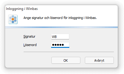 Signatur och lösenord delas ut av administratören, d.v.s. Supervisor eller användare med samma rättigheter. Signatur och lösenord bestäms i allmänhet när användaren registreras i Winbas.