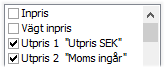 Utpris 1 till 9. Normalt sätts Prisändringsdatum till dagens datum på en produkt när något av utpriserna 1 till 9 förändras i antingen produktkortet, vid Inläsning av prislistor eller i någon annan automatiserad process såsom Generell prisändring. Kryssrutorna i listan ger möjlighet att koppla bort förändring av prisändringsdatum för vissa prislistor när prisuppgifter ändras på produkten för den aktuella prislistan. Detta kan t.ex. innebära att t.ex. Utpris 1 kan ligga till grund för nytt prisändringsdatum, medan kanske ändring av Utpris 7 inte påverkar produktens prisändringsdatum.