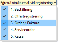 Utleverans. Detaljavräkning på strukturprodukten ska vara Utleverans. I samband med Offertregistrering, Order / faktura och Serviceorder, kommer även alla underliggande detaljer i alla befintliga nivåer att skapas på transaktionen. Är inte inställningen på, kommer enbart själva strukturen i första nivån att skapas på transaktionen.