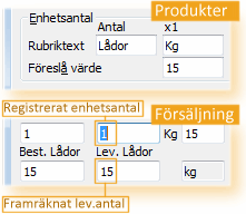 Enheter aktiveras när produkt med enhetsantal används vid registrering av transaktioner i följande rutiner, beroende på vilka inställningar som har utförts:
