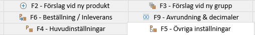 Uppgifterna som anges här föreslås vid registrering av Beställning, Inleverans samt Offert och Order / faktura, men kan ändras vid registreringstillfället. Information om transportkod och transaktionskod finns att få hos Statistiska Centralbyrån.