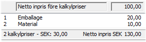 Registrerade kalkylpriser kan antingen läggas till produktens inpris, eller ligga till grund för inpriset.
