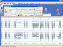 Söklista med inneliggande order öppnas från Order / faktura. Ett antal kolumner är invalda samtidigt som inställningarna Justera bredden till kolumner och Justera höjden efter antal rader för söklistor är aktiverade varför söklistan tar stor del av skärmutrymmet i anspråk när den visas. Windows XP med temat Standard blå används varför raderna tonas med en svag blå nyans. |
