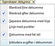 Delsumma med fet stil kommer att skriva summan i fet stil