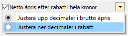 Om företaget i första hand använder nettopriser, alltså prisuppgifter som redovisar kundens pris efter rabatter, kan framräknade priser avrundas till hela kronor när rabatt i procent används.